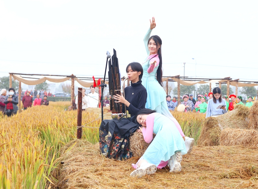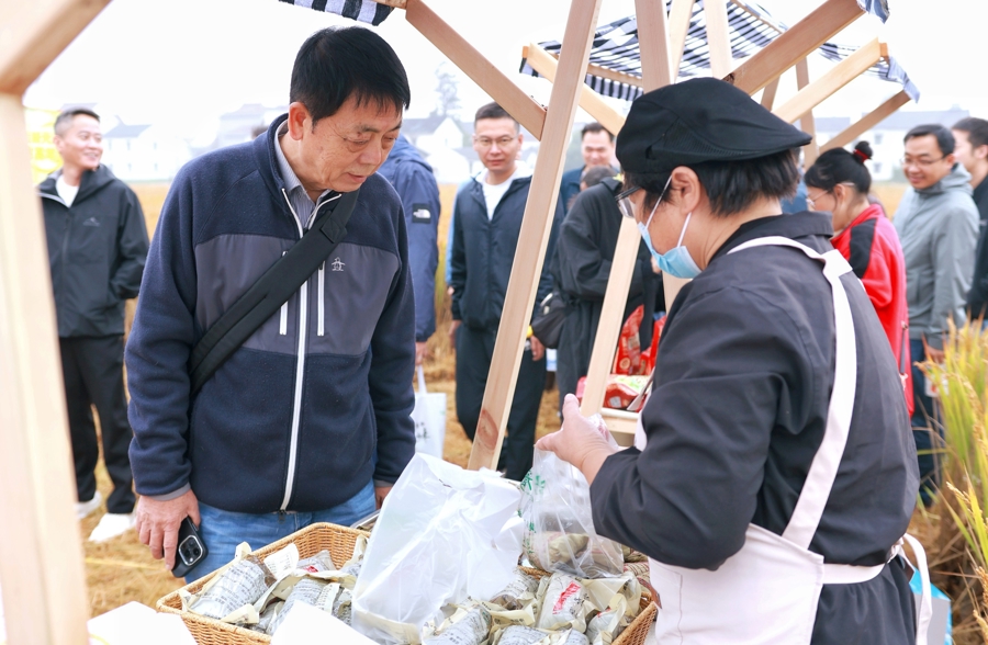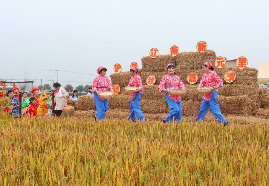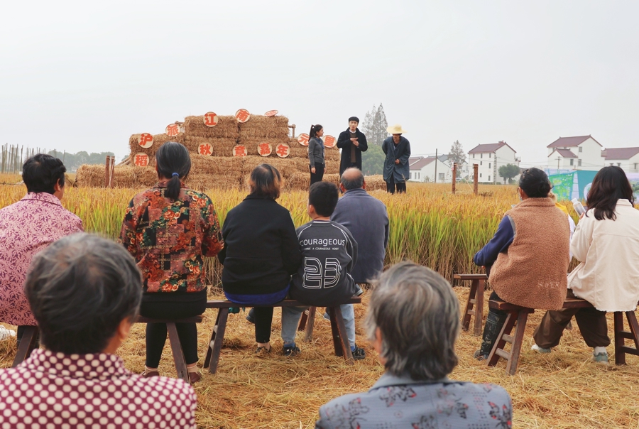 稻浪翻滚溢清香,沪韵悠扬满新元。11月8日,在金山区枫泾镇新元村,以“沪派江南新元里,稻香秋意嘉年滑”为主题的活动在一片金黄的稻田中举行。活动融合了串马灯表演、沪剧表演、特产市集等亮点,将枫泾的非遗文化和新元村的“秋收果” “秋收味”安放于稻田中,共鉴沪派江南的金秋丰收之美。