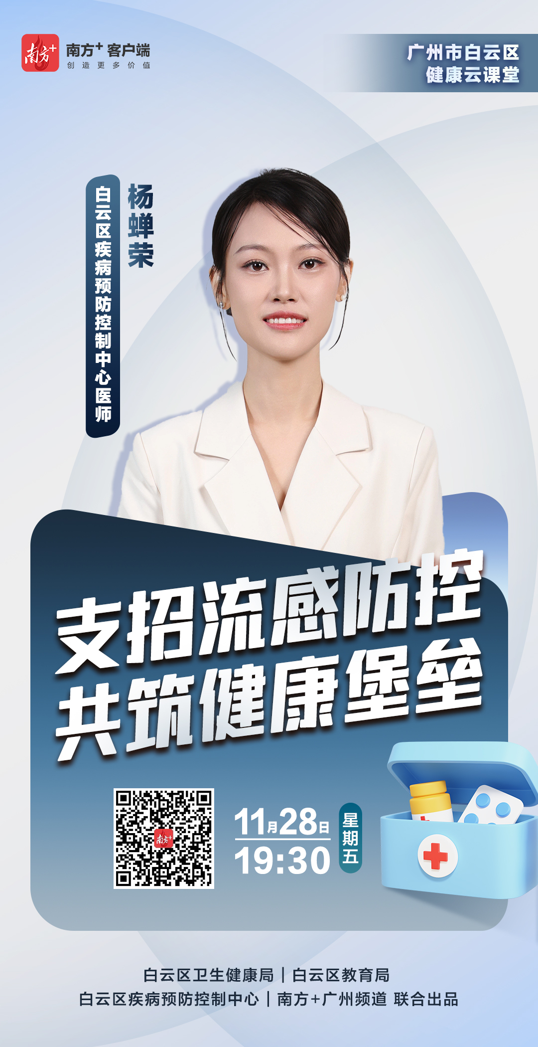 为提升市民流感防控意识,科学应对疫情,白云区卫生健康局、白云区教育局、白云区疾病预防控制中心联合南方报业传媒集团广州分社,将于11月28日推出 《白云区健康云课堂》 ,聚焦当前流感防控热点,为市民提供权威、实用的防护指南。