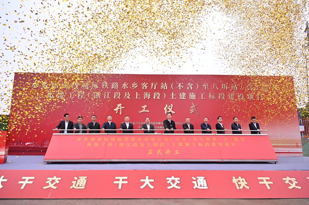 11月7日上午,水乡旅游线城际铁路水乡客厅站(不含)至八坼站(含)段及衔接工程(浙江段及上海段)项目开工仪式在嘉兴市嘉善县西塘镇荻沼村西北侧中铁十局工地内隆重举行。该标段作为沪苏嘉城际铁路的关键衔接环节,将实现上海与浙江的地下轨道交通无缝贯通,为“轨道上的长三角”建设注入新动能。